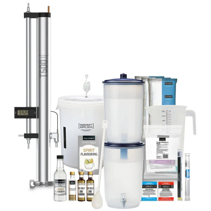 The T500 Distillery Kit contains everything needed to make a wash ready for distillation and more! This kit includes high quality ingredients and equipment manufactured by market leaders, Still Spirits and Mangrove Jack's. The high quality, Stainless Steel condenser is included to effortlessly deliver the best quality neutral spirit.
